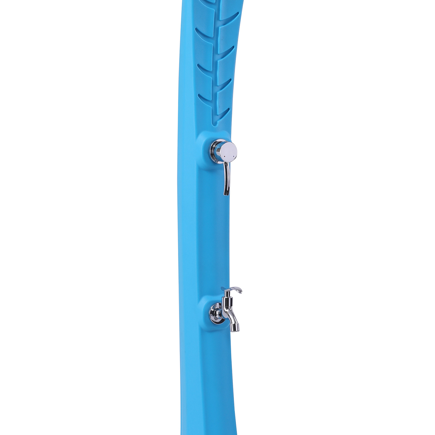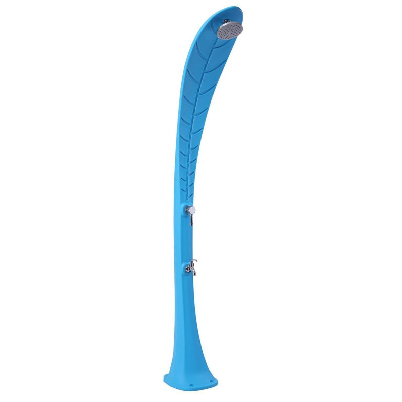 DOCCIASOLARE-FOGLIA-BLU Starmatrix Docciasolare Foglia Blu Doccia Blu In Polietilene a Riscaldamento Solare Elegante Forma Di Foglia Serbatoio Litri 35 Miscelatore e Lavapieti Soffione Autodecalcificante Per Spazi Esterni