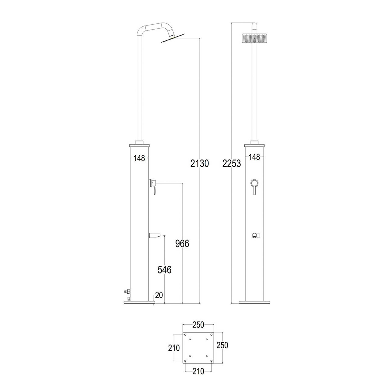 SS0918 Starmatrix Doccia solare da esterno nera in alluminio serbatoio 26 L soffione quadrato 22 cm in ABS miscelatore e lavapiedi altezza 225 cm pressione max 3 bar SS0918