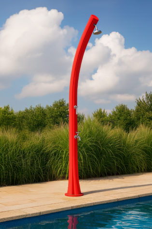 DOCCIA-SOLE-ROSSA Sined Sole Doccia Solare Curva In Polietilene Hd Con Soffione e Lavapiedi Da 25 Lt Rossa