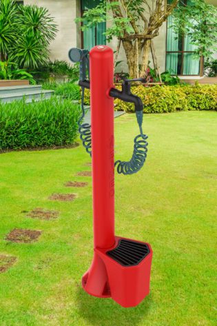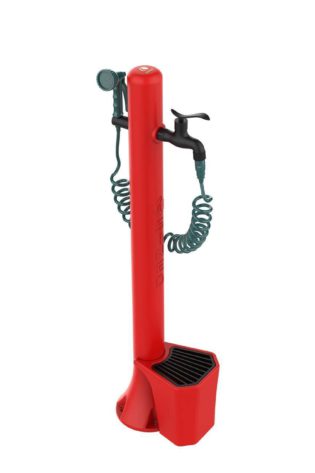 FONTANA-TRITONE-PRO-ROSSA Sined Tritone Pro Fontana Da Giardino Con Doppio Attacco Acqua e Cestello In Polietilene Rossa