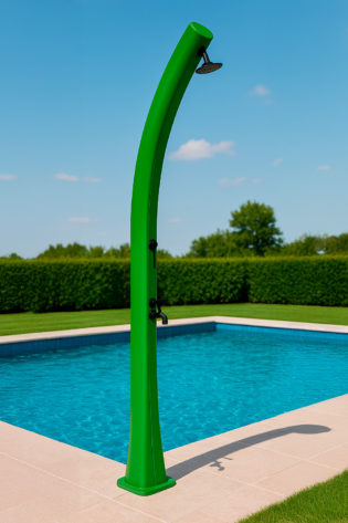 DOCCIASOLARE-RIO-VERDE-BLACKMATT MPC Doccia Verde in Polietilene HD a Riscaldamento Solare con Serbatoio da 25 Litri e Rubinetti Neri Modello Rio Altezza 226 cm Soffione Rotondo Diametro 10 cm Ideale per Esterni